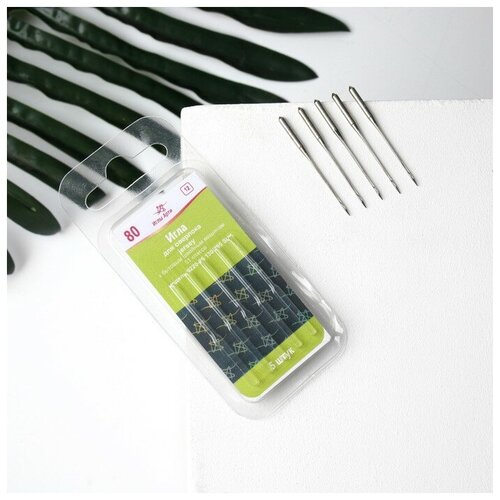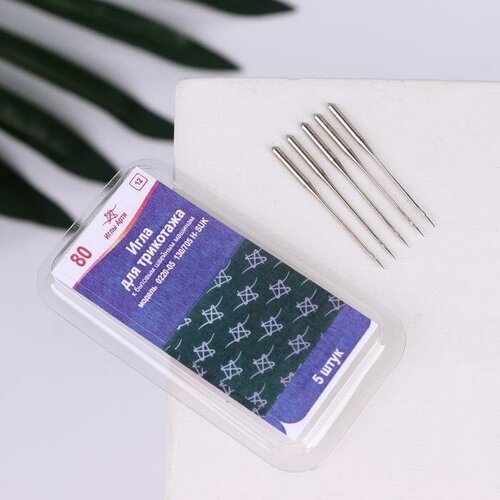 Иглы для бытовых швейных машин, для трикотажа, №80, 5 шт