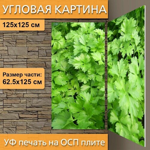 Угловая модульная картина "Петрушка, квартира лист, итальянские блюда" для интерьера на ОСП плите, 125х125 см.
