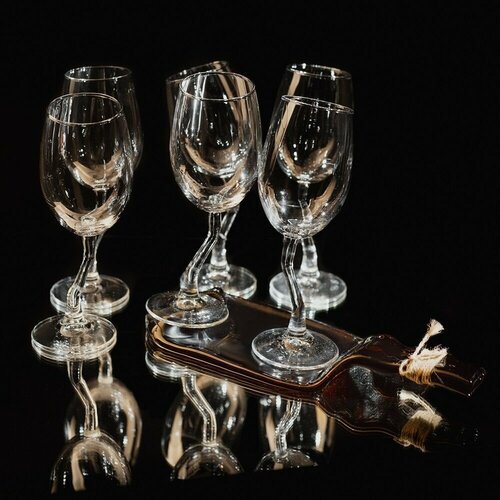 Подарочный набор - шесть бокалов для вина с блюдом из зеленой бутылки серии Хмельное стекло