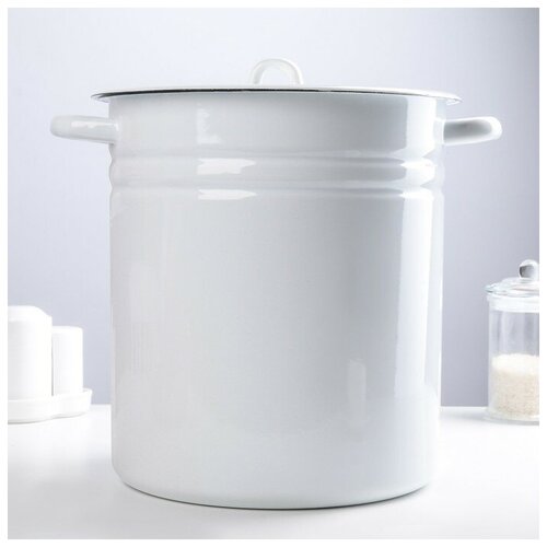 Кастрюля цилиндрическая, 12 л, металлическая крышка, индукция, цвет белый