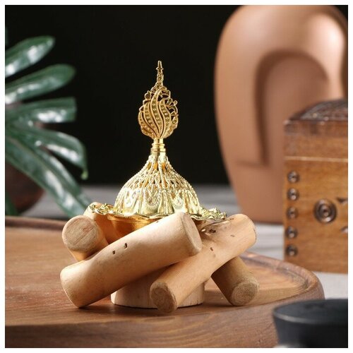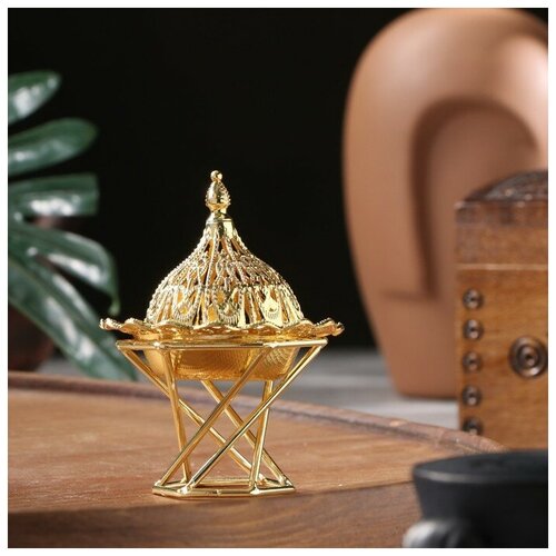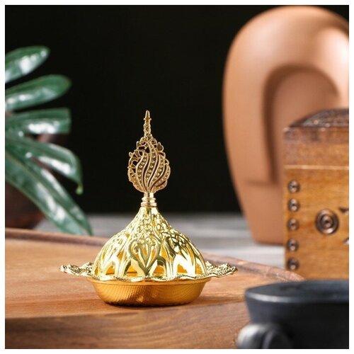 Курильница для благовоний порошковых и конусов Огонёк, золотистый, 9х8 см