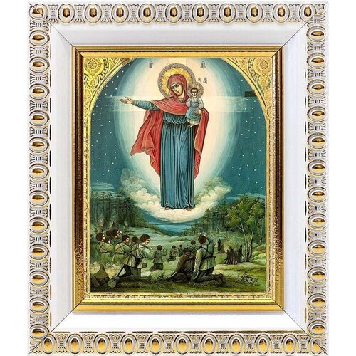 Икона Божией Матери "Призри на смирение", в белой пластиковой рамке 8,5*10 см
