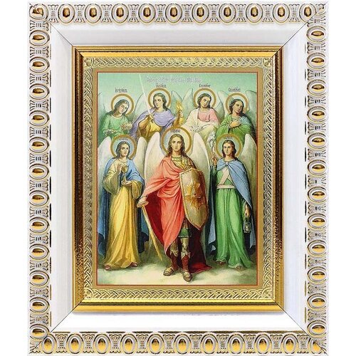 Собор Архангела Михаила (лик № 104), икона в белой пластиковой рамке 8,5*10 см