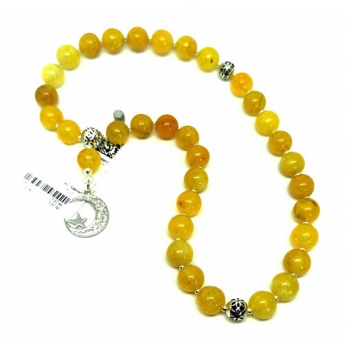 Мусульманские четки античное серебро "Аллах Акбар" натурального желтого нефрита