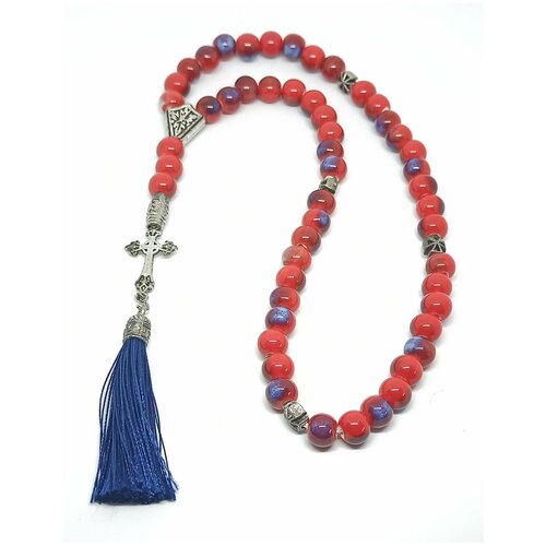 Православные четки из красно-синей керамики на 50 зерен с крестом и кистью