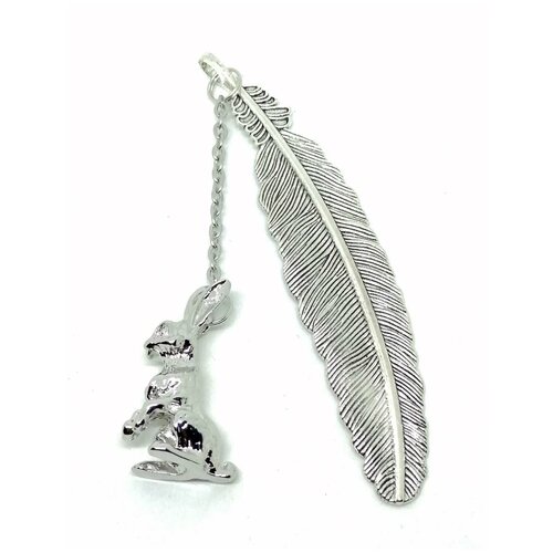 Металлическая двухсторонняя закладка перо с новогодним снежным кроликом