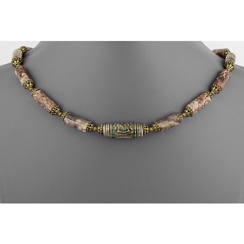 Бусы яшма (риолит), агат Дзи "Птицы" 45 см. Коллекция "Minera Dzi Stones". №01893