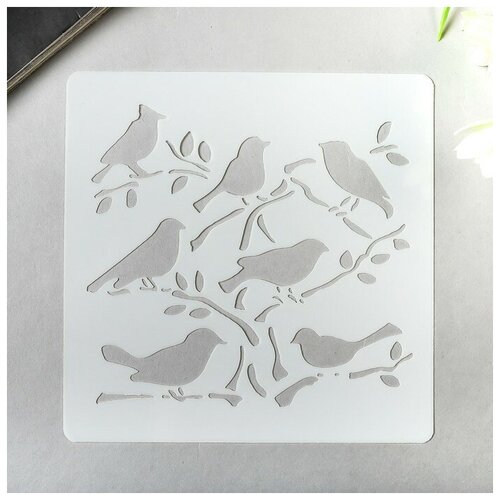 Трафарет пластик "Птицы на ветках" 13х13 см