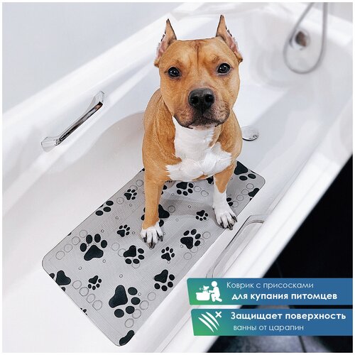 Коврик для ванны с присосками "Для животных" 43х90 см - Лапки серый