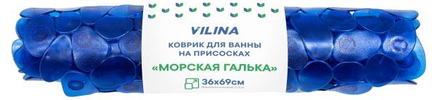 Коврик для ванны Вилина на присосках ПВХ галька синий, 36х69 см