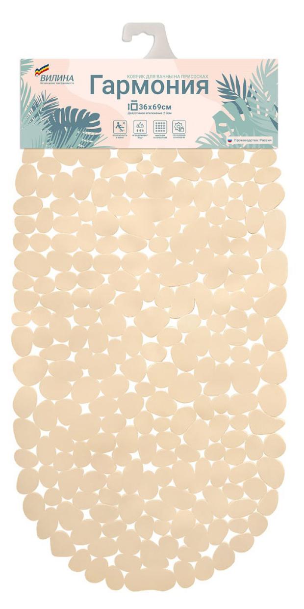 Коврик Вилина Гармония ПВХ для ванны с присосками бежевый, 36х69 см