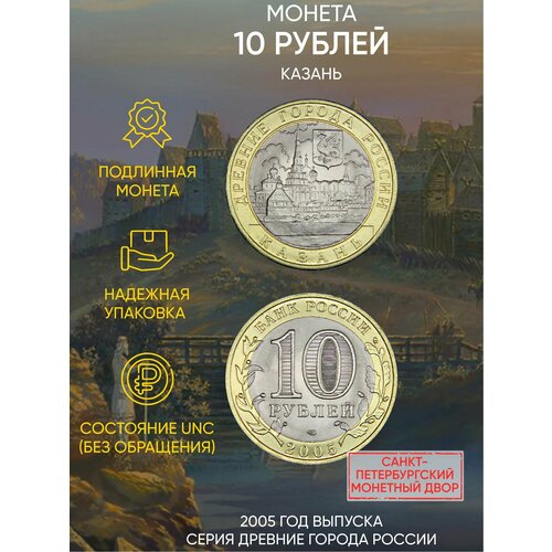 Памятная монета 10 рублей Казань. Древние города России. СПМД. Россия, 2005 г. UNC (без обращения)