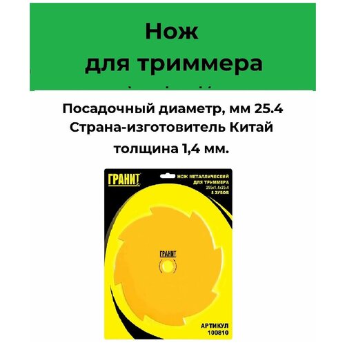 НОЖ металлический для триммера ТМ гранит 8 зубов, 255*1.4*25.4мм