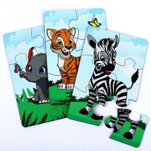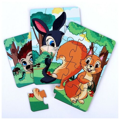 Набор пазлов «Лесные звери», 3 пазла, 12 деталей