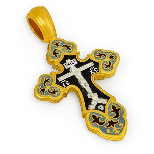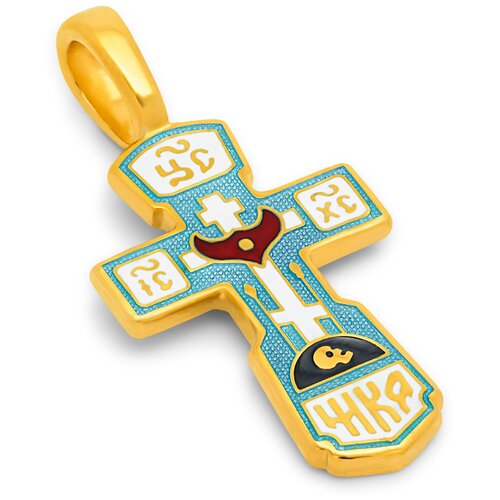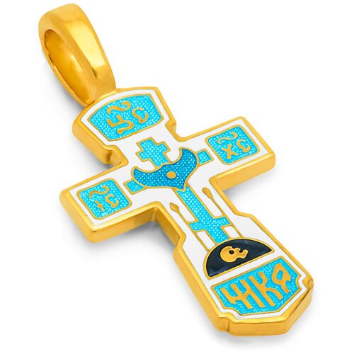 Крестик серебро с позолотой «Голгофский» бело-голубая эмаль (арт. KRSPE0108)