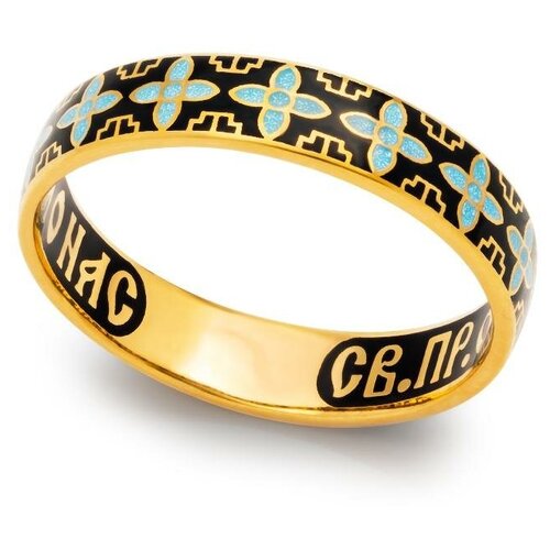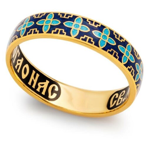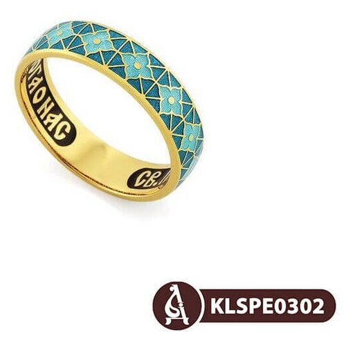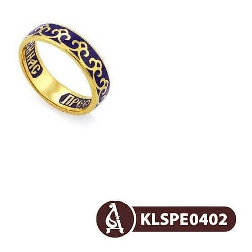 Религиозное кольцо молитвой Пресвятой Богородице серебряное с эмалью синего цвета KLSPE0402