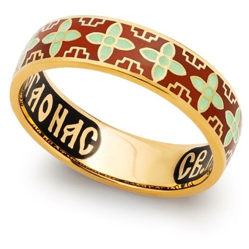 Кольцо с молитвой Сергию Радонежскому серебряное с эмалью красно-желтого цвета KLSPE0620