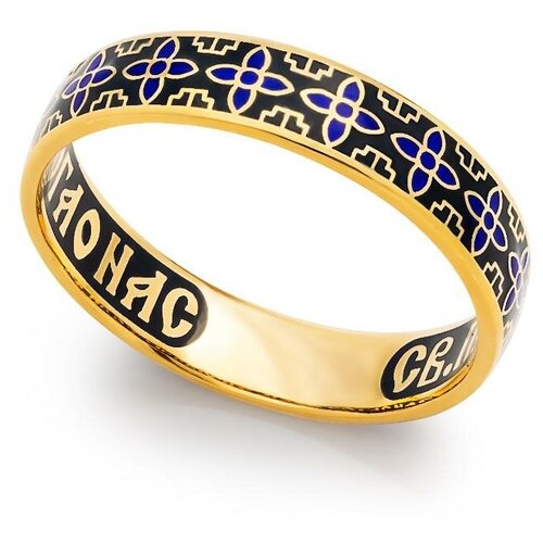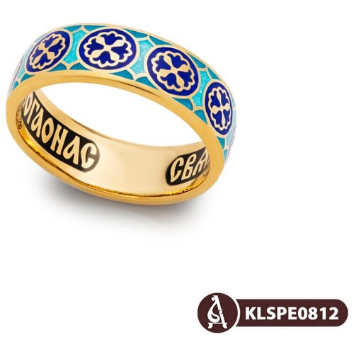 Церковное кольцо с молитвой Сергию Радонежскому серебряное с эмалью темно-синего и голубого цвета KLSPE0601