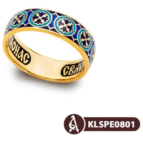 Кольцо православное молитва Николаю Чудотворцу серебряное с эмалью KLSPE0801