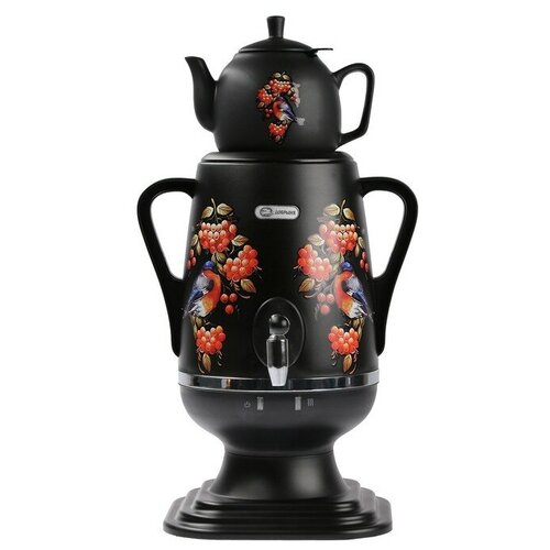 Самовар электрический "Добрыня" DO-432, пластик, 4 л, 1850 Вт, чёрный с рисунком "Снегирь"