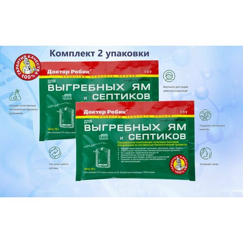 Средство для выгребных ям и септиков Доктор Робик 109, 2 пакетика по 75 г