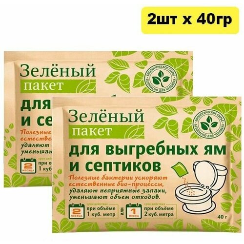 Средство для выгребных ям и септиков «Зеленый пакет» на 2 месяца - 2 м3 , 2 шт.