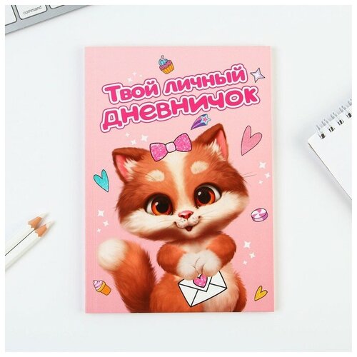 Подарочный набор: блокнот, карандаши ч/г 2 шт и значок «Котик»