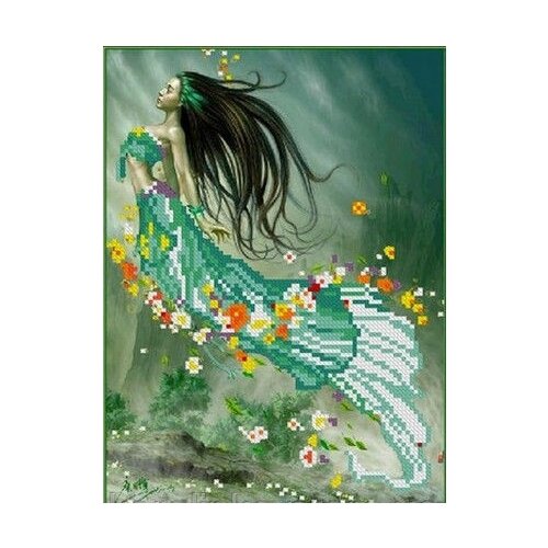 Ткань с рисунком для вышивки бисером каролинка Русалка, 17,8*24,5см