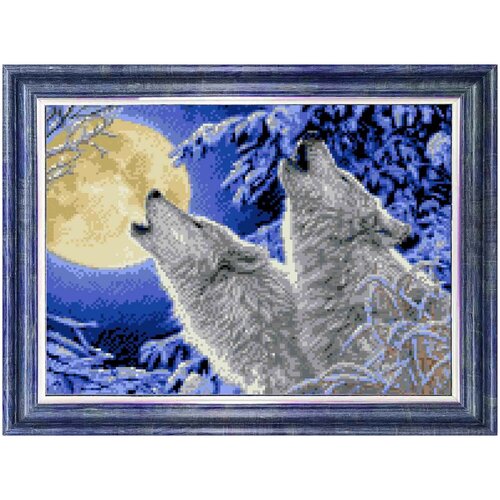 Ткань с рисунком для вышивки бисером каролинка Волк, 13*15см