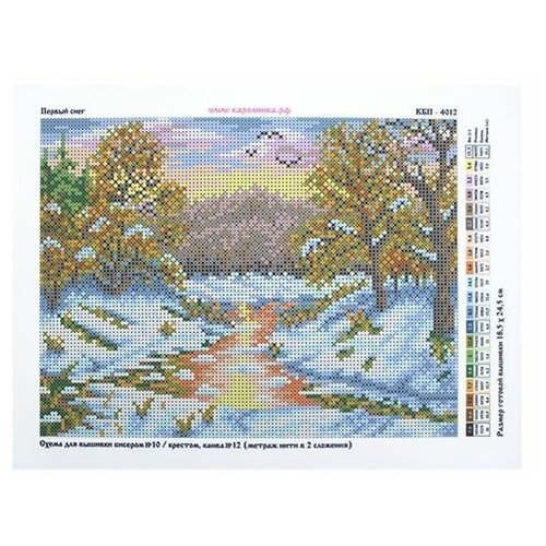Ткань с рисунком для вышивки бисером каролинка Первый снег, 24,5*18,5см