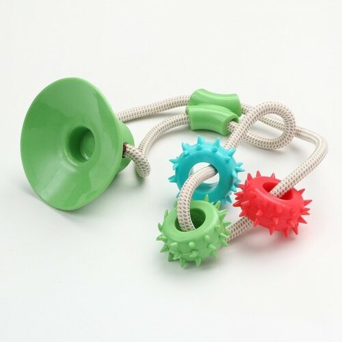Игрушка для собак ТероПром 7916137 "Кольца с шипами на присоске", 40 см, зелёная/голубая/красная