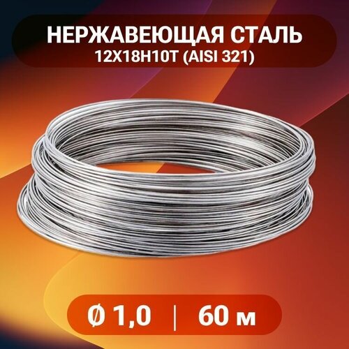 Проволока нержа 1 мм в бухте 60 метров, нержавеющая сталь 12Х18Н10Т (AISI 321)