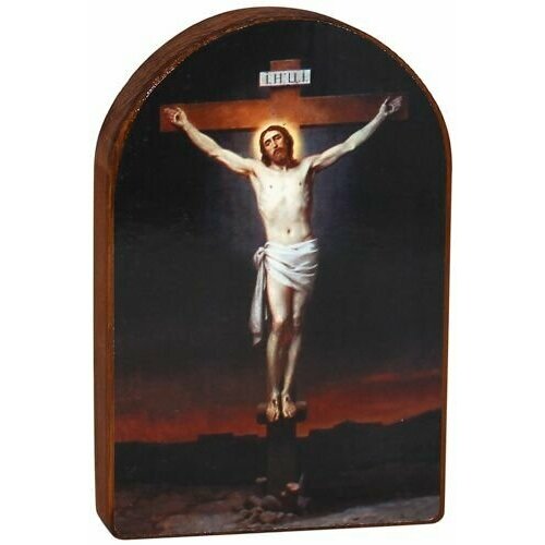Икона на деревянной основе Распятие Иисуса Христа арочная (16,2*10,2*1,2 см).