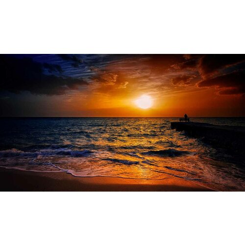 Картина на холсте 60x100 LinxOne "Закат море рыбак" интерьер для дома / декор на стену / дизайн
