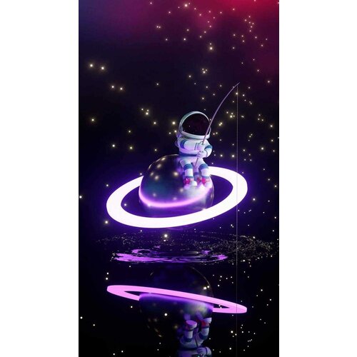 Картина на холсте 50x60 LinxOne "Космонавт, рыбак, планета, свечение, вертикальный" интерьер для дома / декор на стену / дизайн