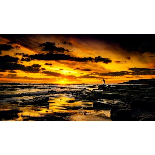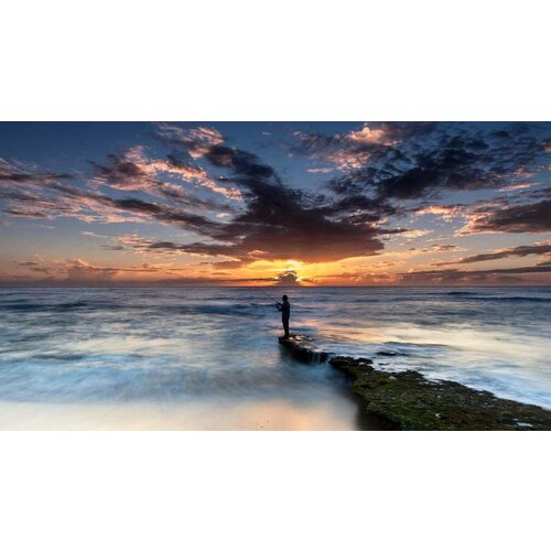 Постер на экокоже 60x110 LinxOne "Небо рыбак закат силуэт море" интерьер для дома / декор на стену / дизайн