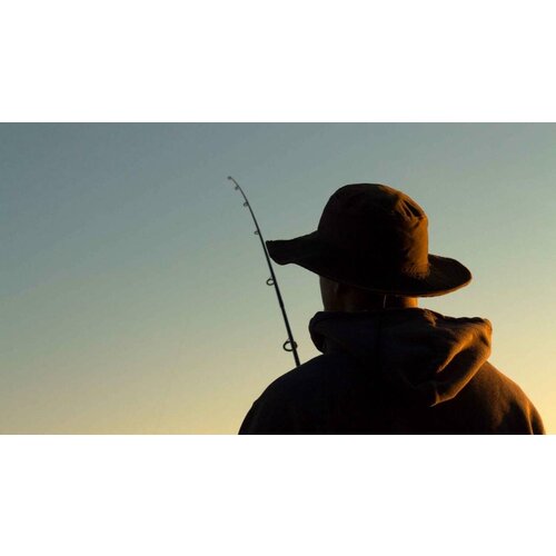 Постер на экокоже 50x80 LinxOne "Рыбалка, рыбак, удочка, шляпа" интерьер для дома / декор на стену / дизайн