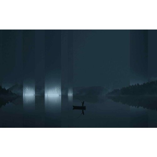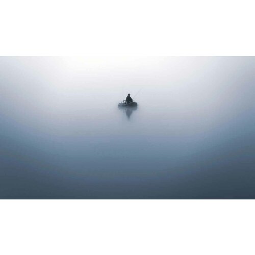 Постер на экокоже 50x80 LinxOne "Туман рыбак лодка" интерьер для дома / декор на стену / дизайн