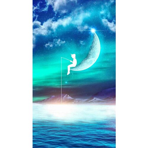 Постер на экокоже 40x60 LinxOne "Рыбак, луна, фантазия, силуэт, вертикальный" интерьер для дома / декор на стену / дизайн
