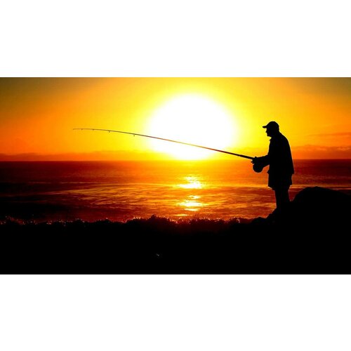 Картина на холсте 60x80 LinxOne "море рыбак рыбалка закат" интерьер для дома / декор на стену / дизайн