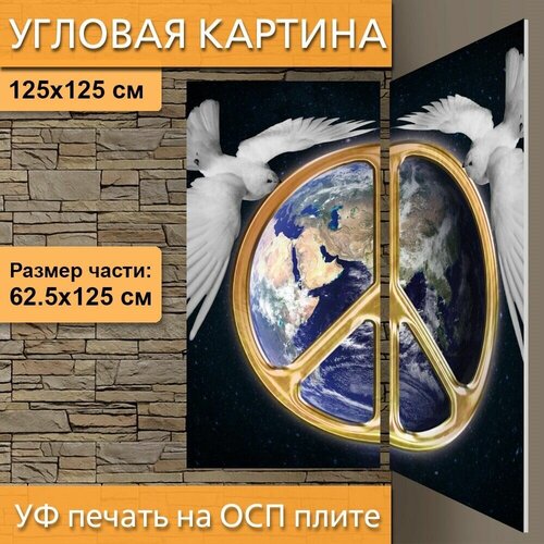 Угловая модульная картина "Мир, мир во всем мире, глобус" для интерьера на ОСП плите, 125х125 см.