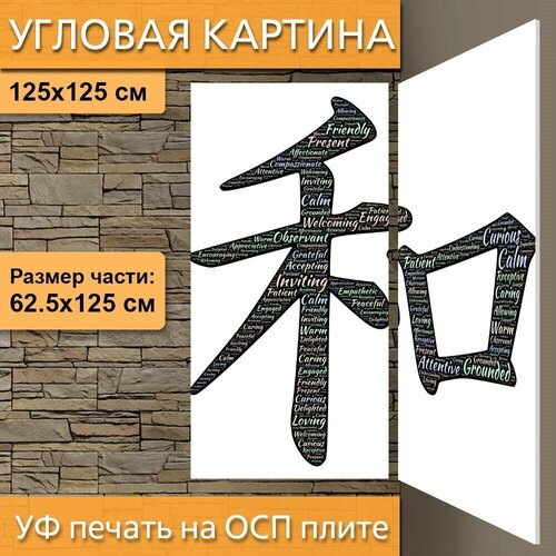 Угловая модульная картина "Мир, спокойствие, японский" для интерьера на ОСП плите, 125х125 см.