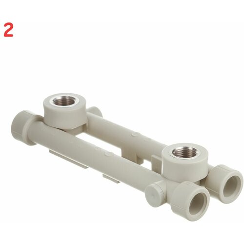 Водорозетка полипропиленовая двойная 20 мм х 1/2 ВР(г) на планке серая (2 шт.)