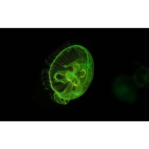 Картина на холсте 33x50 LinxOne "Медуза, подводный мир, зеленый, свечение, плавать" интерьер для дома / декор на стену / дизайн