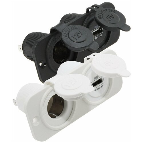 Гнездо зарядное USB 2.4A. черное. одинарное + прикуриватель