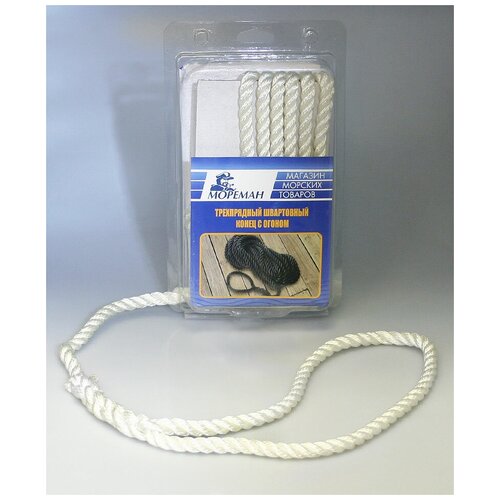 Мореман Трехпрядный швартовый конец, 9,5 мм x 4,5 м, белый