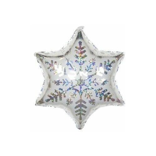 Воздушный фольгированный шар с гелием Снежинка серебро Голография