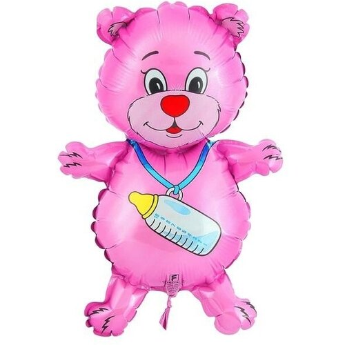 Воздушный шар с гелием фольгированная фигура мишка с бутылочкой розовый