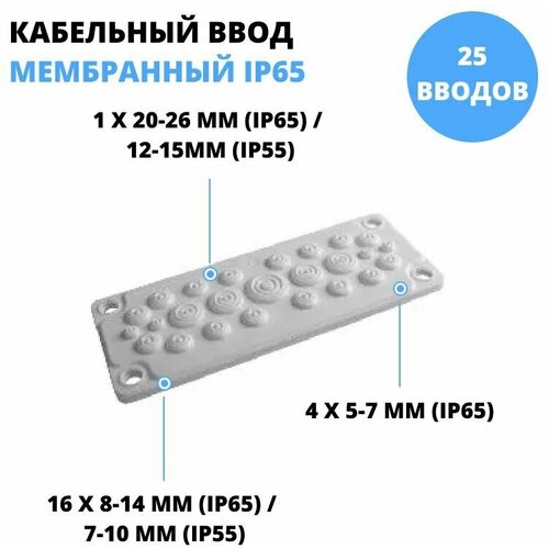 Кабельный ввод мембранный HTC-25 IP65 25 вводов 1х20-26/12-15, 16х8-14/7-10, 4х5-7 Мультифланец