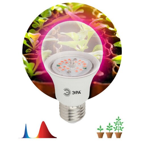 Фитолампа светодиодная для растений Эра E27 220 В 10 Вт 300 лм груша красно-синий спектр розовый свет